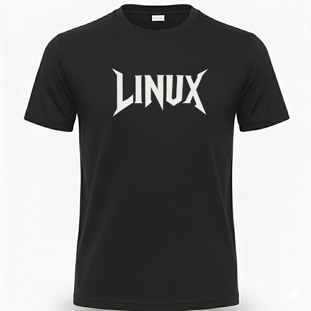 Linux Metal Style Tee – bold design, comfy fit, and built to smash bugs (and Windows).